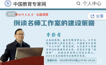 李彰有开设名师工作室建设的公益直播讲座 应中国教育专家网邀请,江宁区名师工作室主持人李彰有2024年2月5日应邀开设