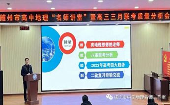 3月24日上午,随州市高中地理“名师讲堂”暨高三三月联考质量分析会在随县一中举行,来自全市高中地理学科教师共80余人参加
