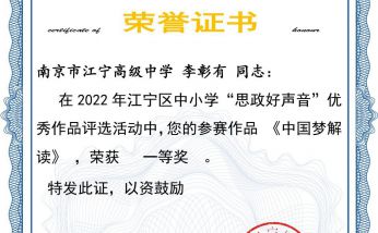 2022年12月28日,从江宁区教育局传来喜讯:经区教育局组织评审,江宁区高中政治李彰有c,工作室成员郭仕蕊老师的