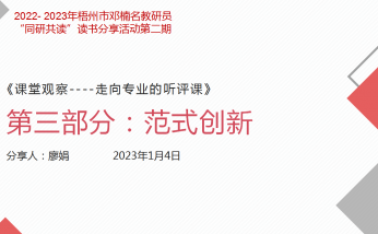 2023年1月4日晚上8点,邓楠名教研员工作室利用腾讯会议平台组织开展“同研共读”读书分享活动第二期第3场,活动主