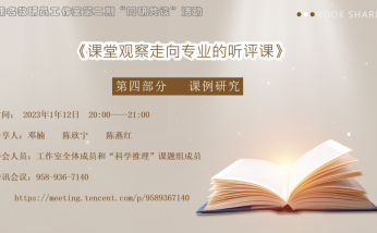 为了更进一步推进“科学推理”课题研究工作,促进邓楠名教研员工作室成员的成长,2023年1月23日晚上8点,邓楠名教