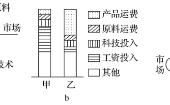 4.工业的区位类型(1)工业导向类型的多角度思考(2)工业主导区位因素的判断方法①根据生产要素的投入比重判断图a中,工业