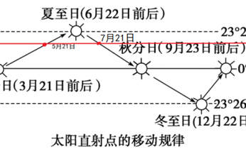 十二、除日出日落方位以外,其他时刻太阳方位判断1、 正午时刻,找太阳直射点位置。(1)北回归线以北地区,一年中正午太阳始