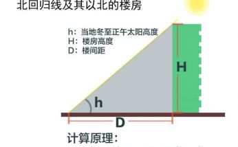 十四、楼间距的计算1、北回归线及其以北地区的楼房,一年中冬至日正午太阳高度最小,楼间距最小值,北面的楼才能全年获得光照。