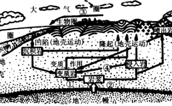 二、岩石圈的地壳物质循环1、岩石按成因分为:岩浆岩、沉积岩、变质岩①岩浆岩:岩浆经过冷却凝结作用形成。喷出岩(岩浆喷发出