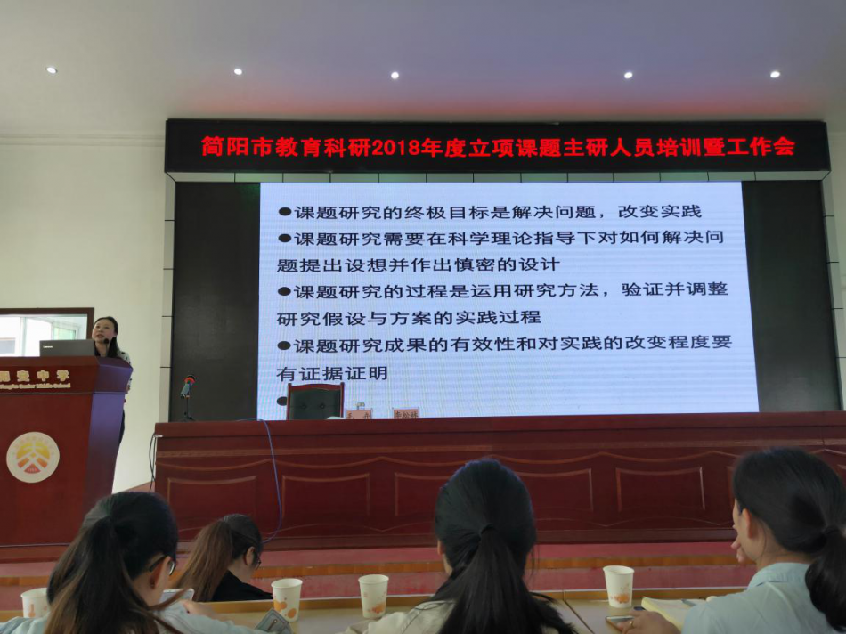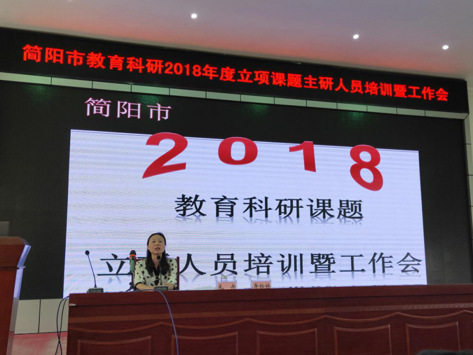 2019年4月8日,简阳市蒋文军名师工作室课题组成员代表何碧玉、王文俐、罗祥育、陈红四位老师到简阳市阳安中学卓越楼六楼会议室,参加简阳市教育科研2018年度立项课题主研人员培训暨工作会。