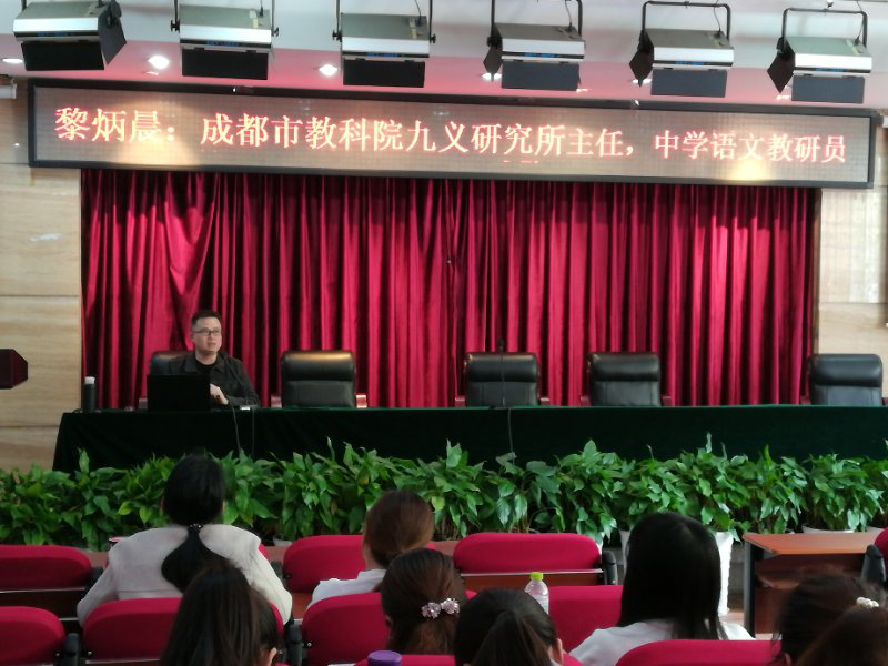 17日上午,青羊区特级教师钟亮老师作了《教师人文素养修炼专题之在读写中教育修行》的专题讲座,钟老师从哲学到社科,从佛学经典到人文读物,给我们推荐了大量的优秀书目。下午,成都市教科院九义研究所主任黎炳晨老师给我们带来了《走一步,再走一步——初中语文教学的虚与实》的讲座,黎老师的讲座内容充实,直切要害,指出的每一条语文教学弊端都直击现在语文教学中的易犯错误。他的语言通俗易懂,逻辑清晰,思路明确,并且给出了可操作性的解决方案。浓缩度非常高,这些干货值得我一再思考一再咀嚼。