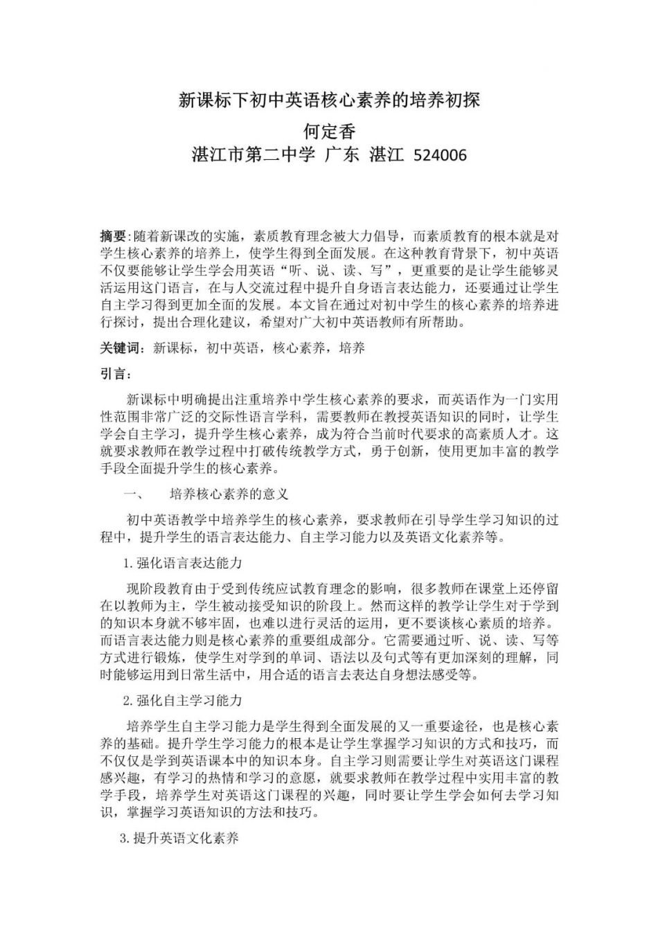 新课标下初中英语核心素养的培养初探