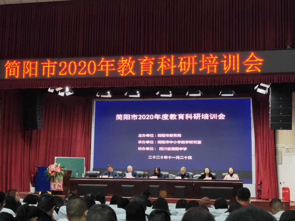 2020年11月20日,简阳市蒋文军名师工作室课题组成员代表何碧玉、王文俐、陈红三位老师到简阳中学河东校区格物楼一楼会议室,参加简阳市2020年教育科研培训会。
