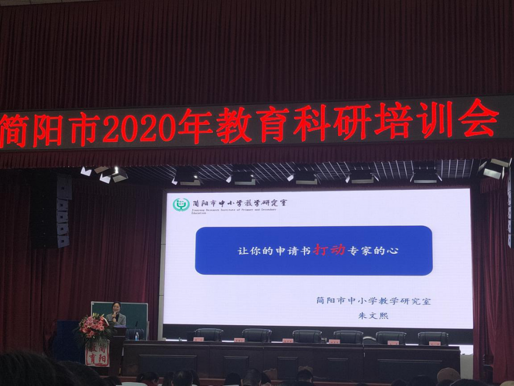 随后,简阳市中小学教学研究室的朱文熙老师给大家做了《让你的申请书打动专家的心》的培训。给老师们具体讲解了如何写出高质量高水平的申请书。