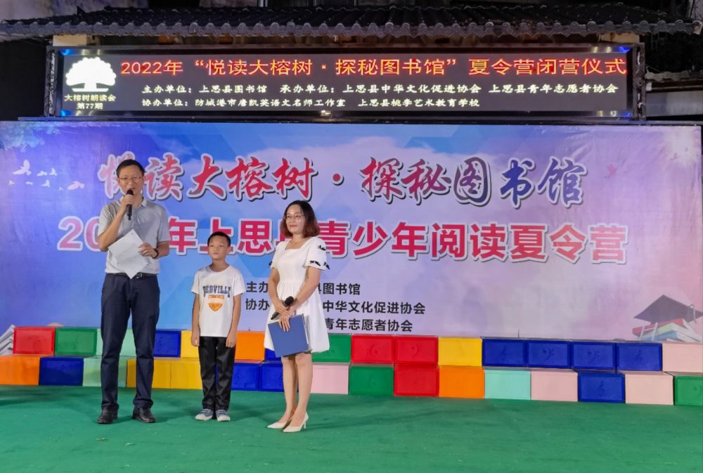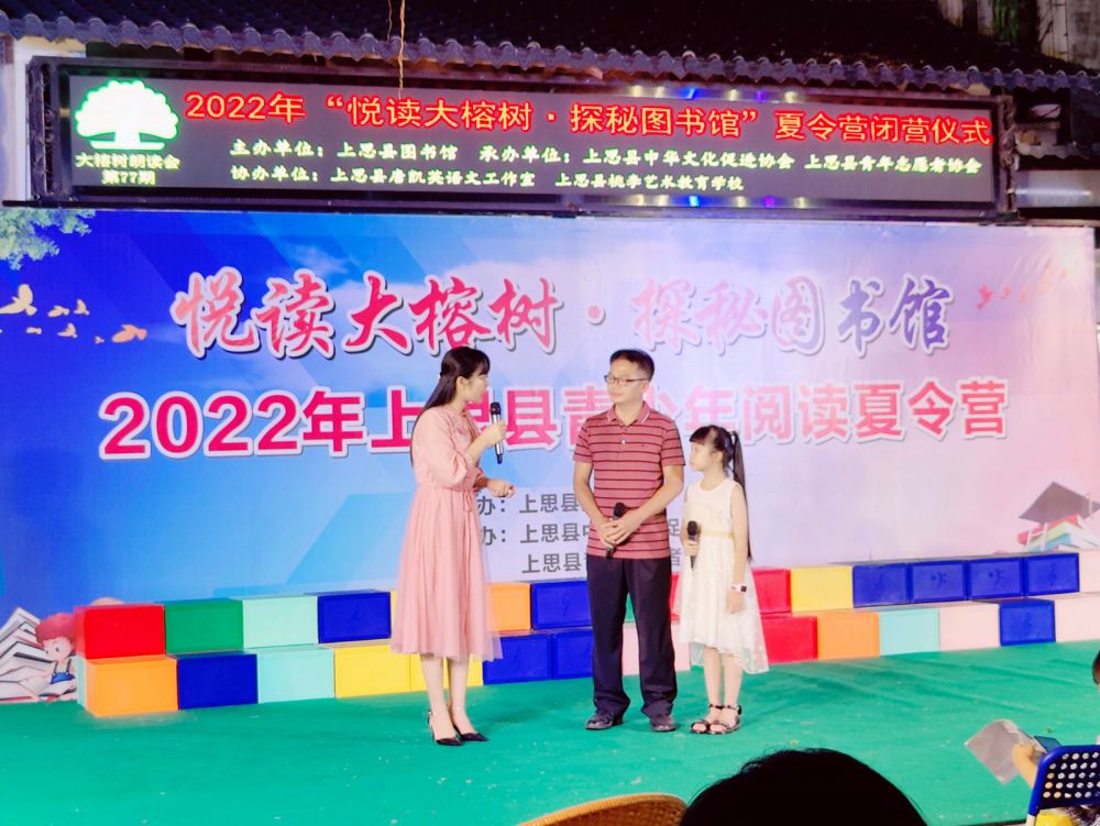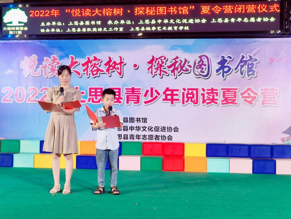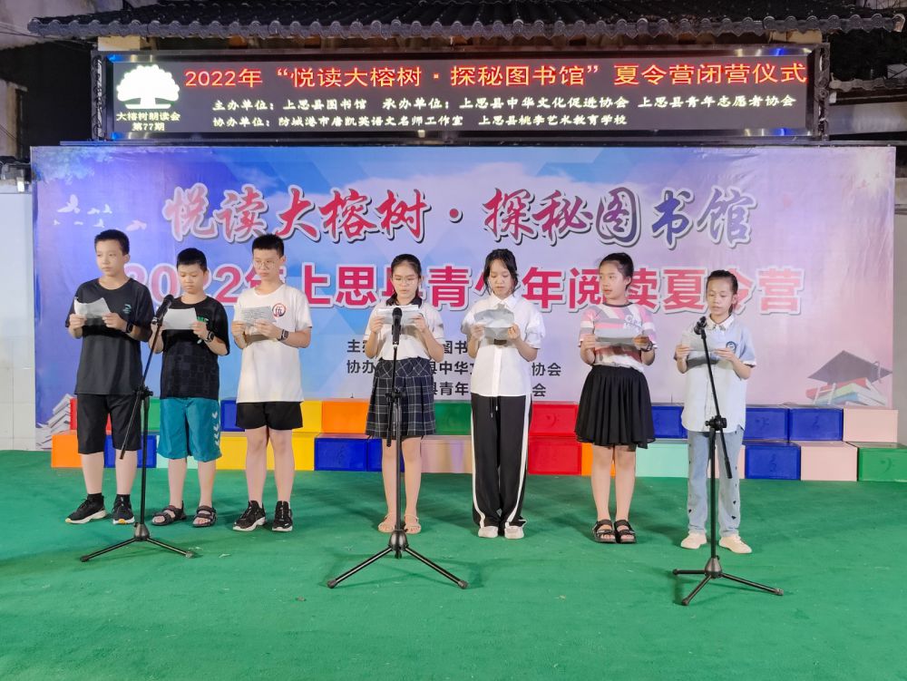 为丰富广大青少年的暑期生活,培养青少年树立正确的人生观和价值观,追求健康积极的生活,让读书成为一种责任、一种习惯、一种追求。让青少年走进书籍,喜欢阅读,习惯阅读,在阅读中快乐,在快乐中成长,发挥图书馆的文化阵地和社会教育作用,倡导积极健康有益的文化活动方式,同时为青少年学知识,长才干提供良好平台。推动“全民阅读·书香上思”活动有效开展,2022年8月12日由上思县图书馆主办,防城港市唐凯英语文名师工作室协办的“悦读大榕树 • 探秘图书馆”夏令营顺利开营啦!