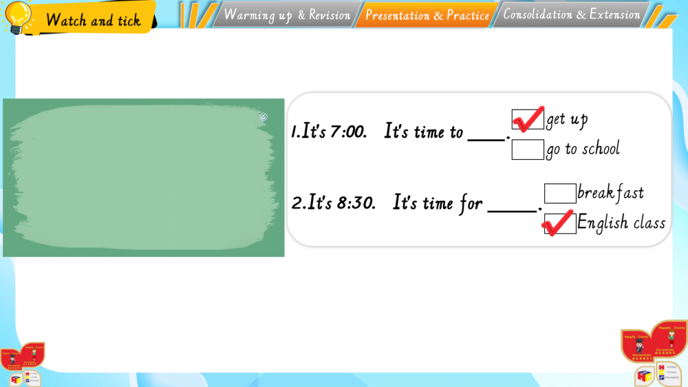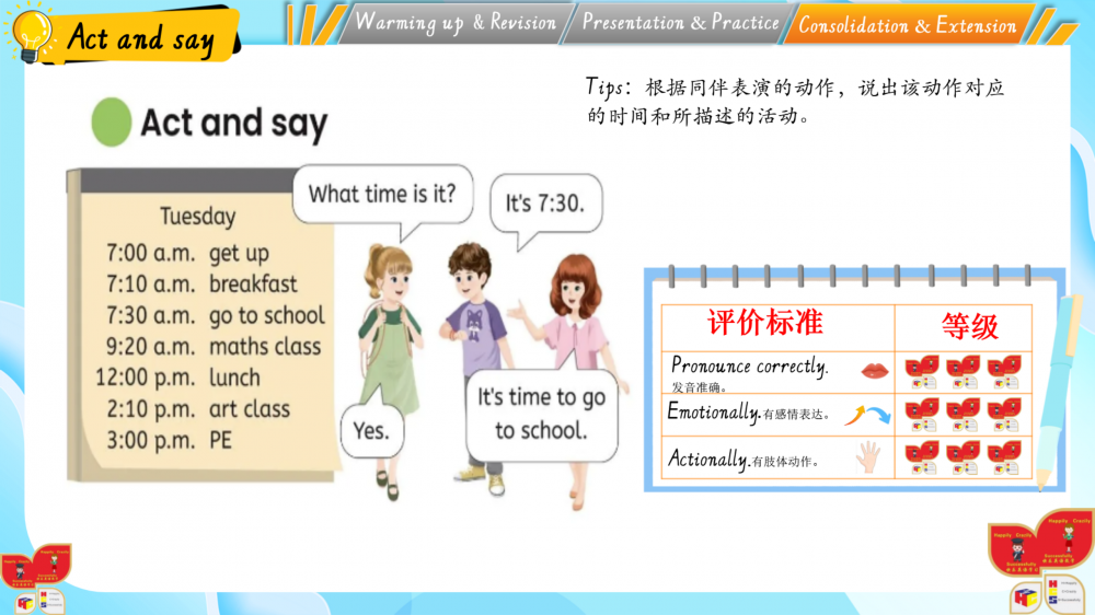 1. 以情境为基,通过动画、互动游戏还原生活场景(如家务劳动等),落实新课标“真实语境中学习语言”的要求;
