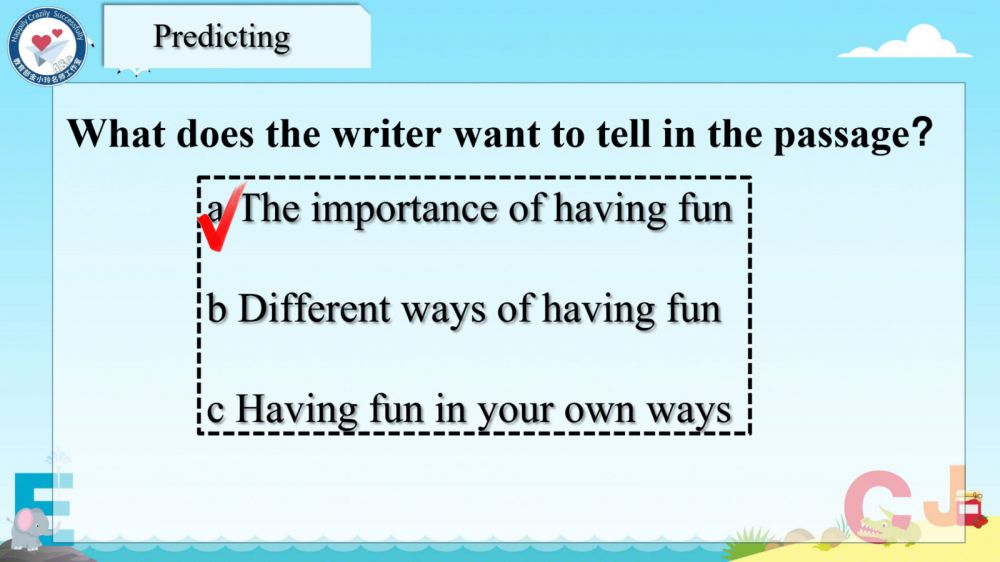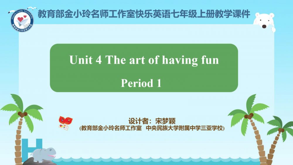本期我们将推出由崔根萍、庄楠楠团队宋梦颖老师精心打磨的Unit 4 The art of having fun Period 1(Reading)希沃教学课件。让我们携手共进,一同探索英语教学的无限可能!期待与您共同成长,让英语课堂绽放更多精彩!