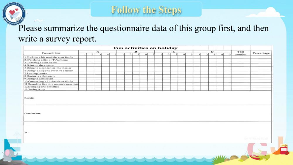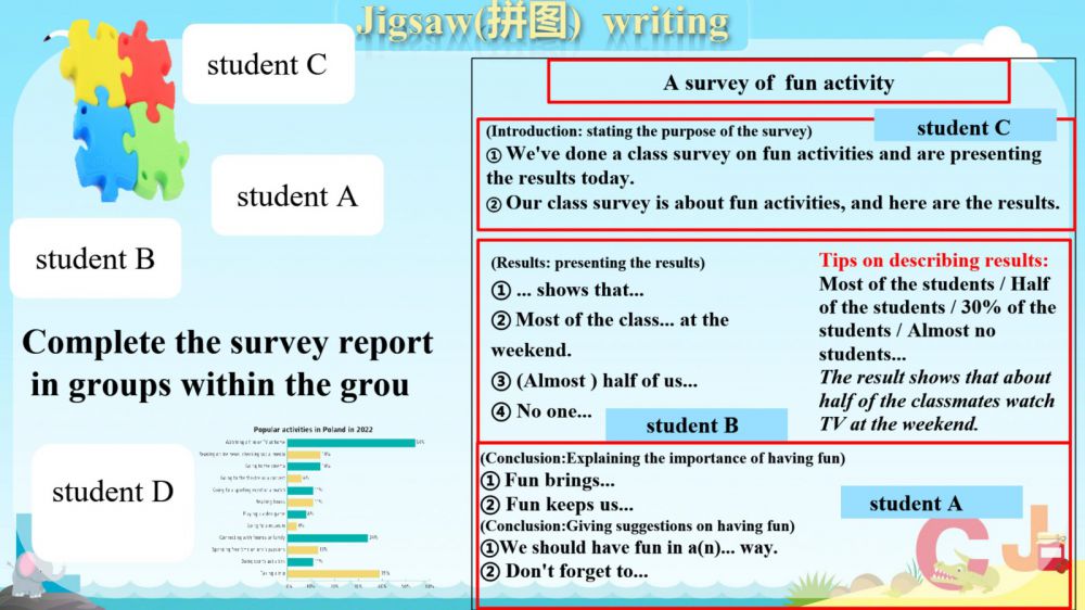 本期我们将推出由崔根萍、庄楠楠团队曹晶老师精心打磨的Unit 4 The art of having fun Period 6 (Presenting ideas & Reflection) 希沃教学课件。让我们携手共进,一同探索英语教学的无限可能!期待与您共同成长,让英语课堂绽放更多精彩!